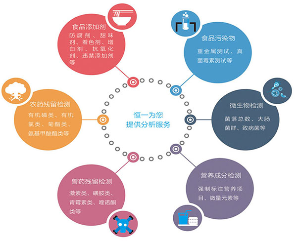 食品檢測內容包含對食品中營養成分、添加劑、污染物、非法添加物、真菌毒素、農獸藥殘留、微生物等的檢測。恒一擁有先進的檢測設備,經驗豐富的工程師,和一流的管理團隊,專注于食品質量和安全的研究,為您提供檢驗檢測、咨詢鑒定、質量控制、人員培訓的一站式服務。